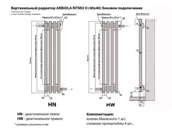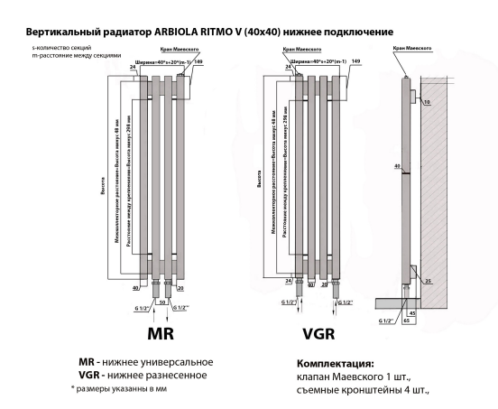 Максимальная температура: Радиаторы выпускаются с боковым и нижним подключением к системе отопления, присоединительный размер G 1/2".