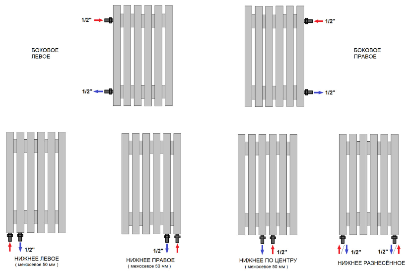 ТЕХНИЧЕСКИЕ ХАРАКТЕРИСТИКИ : • для систем водяного теплоснабжения • рабочее давление 16 атм, испытательное давление 24 атм • температура теплоносителя — до 130 °С • присоединительный размер – нижнее подключение G1/2” • присоединительный размер – боковое подключение G1/2” • для однотрубных и двухтрубных систем отопления