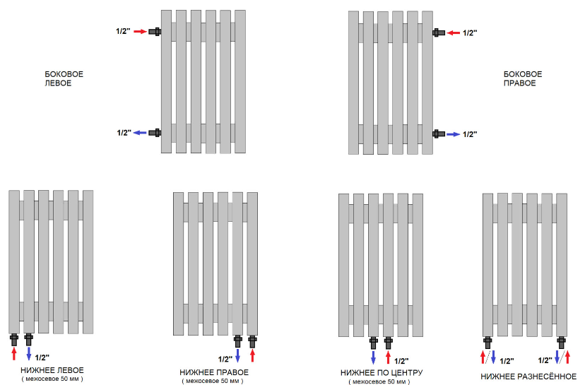 ТЕХНИЧЕСКИЕ ХАРАКТЕРИСТИКИ : • для систем водяного теплоснабжения • рабочее давление 16 атм, испытательное давление 24 атм • температура теплоносителя — до 130 °С • присоединительный размер – нижнее подключение G1/2” • присоединительный размер – боковое подключение G1/2” • для однотрубных и двухтрубных систем отопления