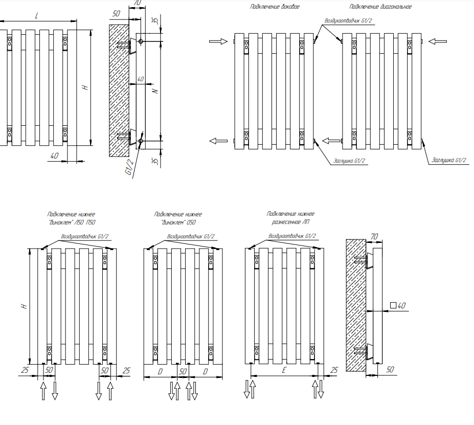 Тип теплоносителя: вода (система отопления)/ этиленгликолевый антифриз (электрический радиатор)